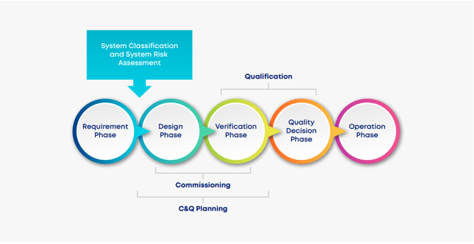 Full lifecycle management comprises five stages: requirement, design, verification, quality decision, and operation, as shown in Figure 1. Each phase plays a crucial role in ensuring the final product's or system's safety, efficacy, and compliance. While full lifecycle management is a broader consideration, this article concentrates on phases one through four, the core of C&Q.