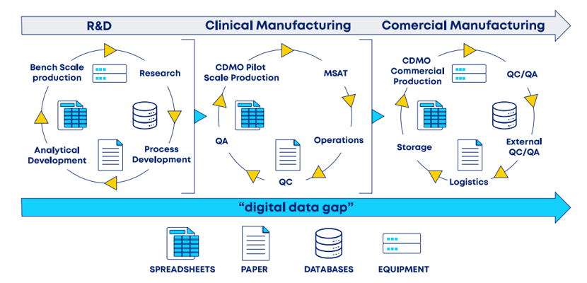 Essentially, this digital transformation streamlines information access in a user-friendly format within a collaborative setting, reducing the risk of failure associated with miscommunication — a common issue when relying on documents or systems. All these factors collectively contribute to expediting the manufacturing and commercialization of drug products.