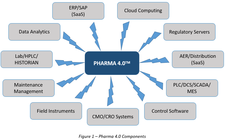Pharma 4.0 is a comprehensive approach to pharmaceutical manufacturing that leverages Industry 4.0 principles to address life sciences sector challenges. It envisions a future where equipment communicates seamlessly, data drives decisions, and operations integrate smoothly with digital processes. Rather than requiring entirely new equipment, Pharma 4.0 emphasizes using existing technologies like IIoT, cloud computing, and data analytics to create a more digital and interconnected manufacturing environment, as Figure 1 illustrates.